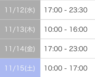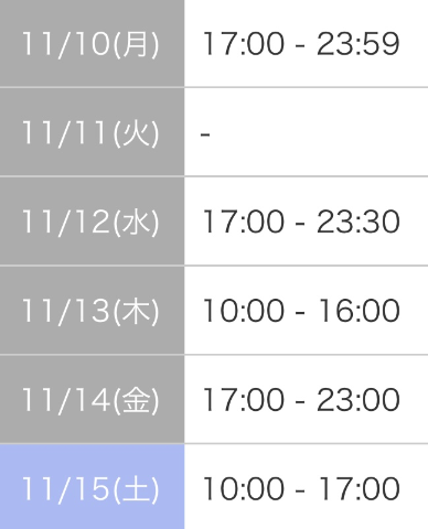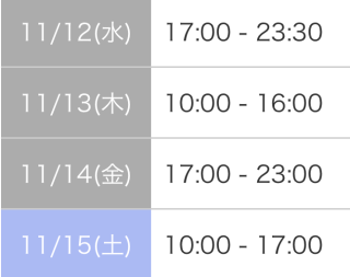本日17:00-23:30です!